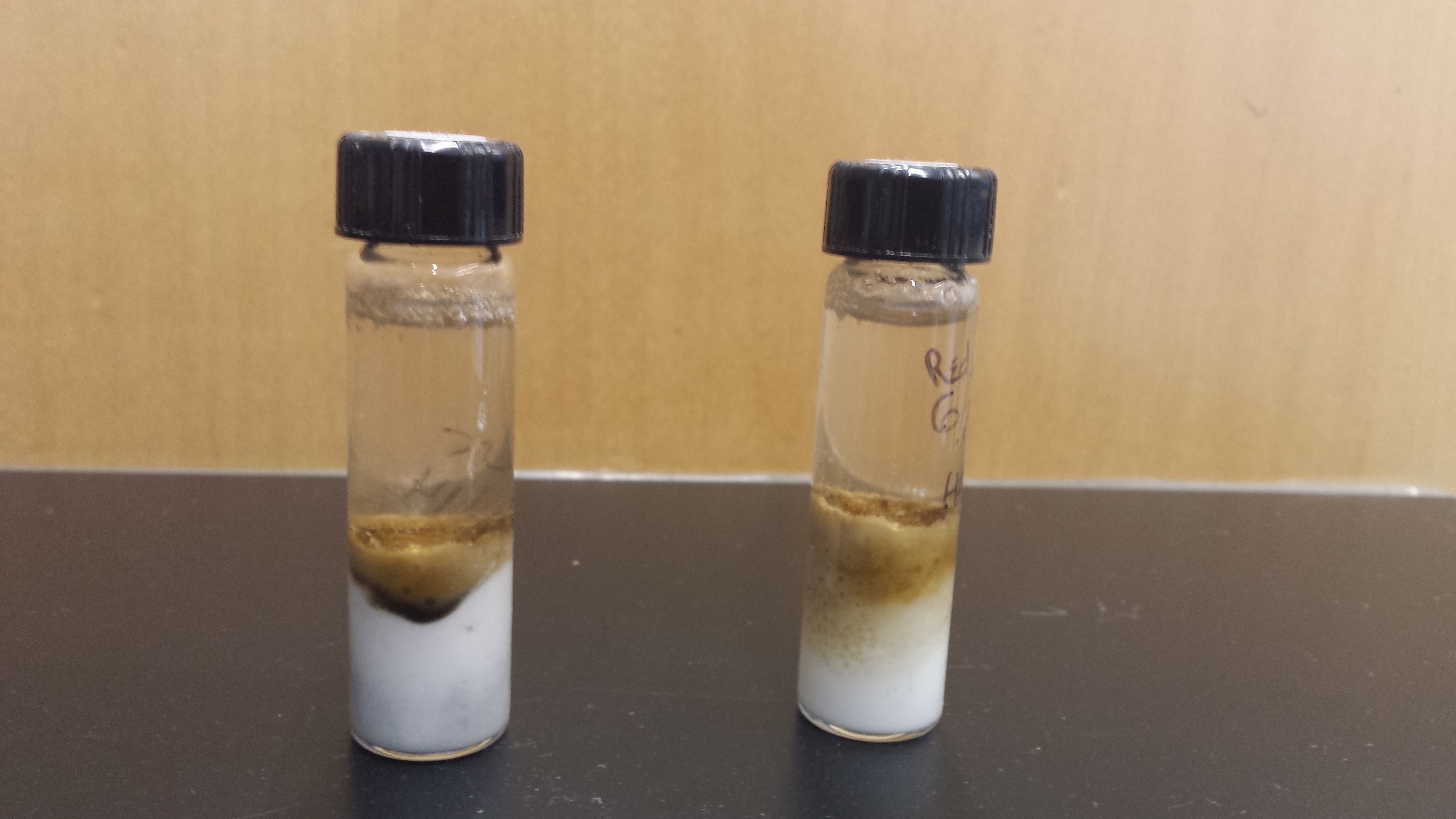 As well as the beginning of a layer floating on the top of the seawater in the container.